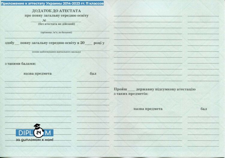 Аттестат 11 классов Украины 2014-2023 гг.